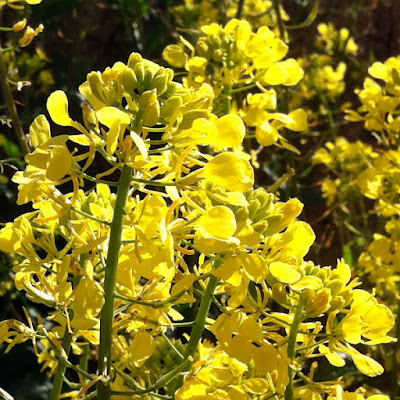 There is a plant that grows abundantly nearby that is in flower at the moment, the yellow flower pictured above, that looks like Woad, except for the leaves. Indeed, it may be a close relative as I remember reading that Woad was of the brassica family, Cabbage and broccoli etc., and so seems to be this yellow flowering plant. Actually this flower looks more like one of the plants used to make Canola. There goes my hope of having wild Woad in abundance just around the corner.