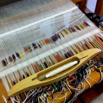 And back to Kasuri an the final stretch home. All tied, all dyed, all set. And now I am finding it difficult to replicate my sample, for the part with the tiny nassen gasuri, not surprising because that is what happens when you use natural dyes. I changed some colours too, replaced cochineal with Indian madder. I can´t wait to see it finished. The weather is just too hot and humid and I am so incredibly tired. But happy.
